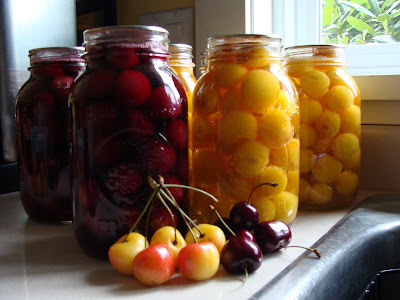 When the canning process is finished, I get such a feeling of satisfaction - a job well done, and my own canned cherries on the basement shelf. They'll be there for those gloomy winter days when I want a taste of summer.